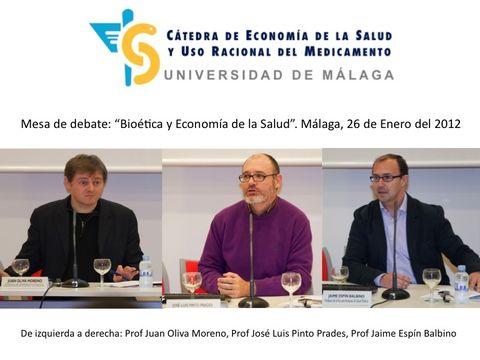La Facultad de Medicina de la Universidad de Málaga ha acogido la mesa redonda "Salud Pública y Economía de la Salud" organizada por la Cátedra de Economía de la Salud y Uso Racional del Medicamento. En el acto participaron el titular de la Cátedra organizadora del evento D. Antonio J. García; D.
